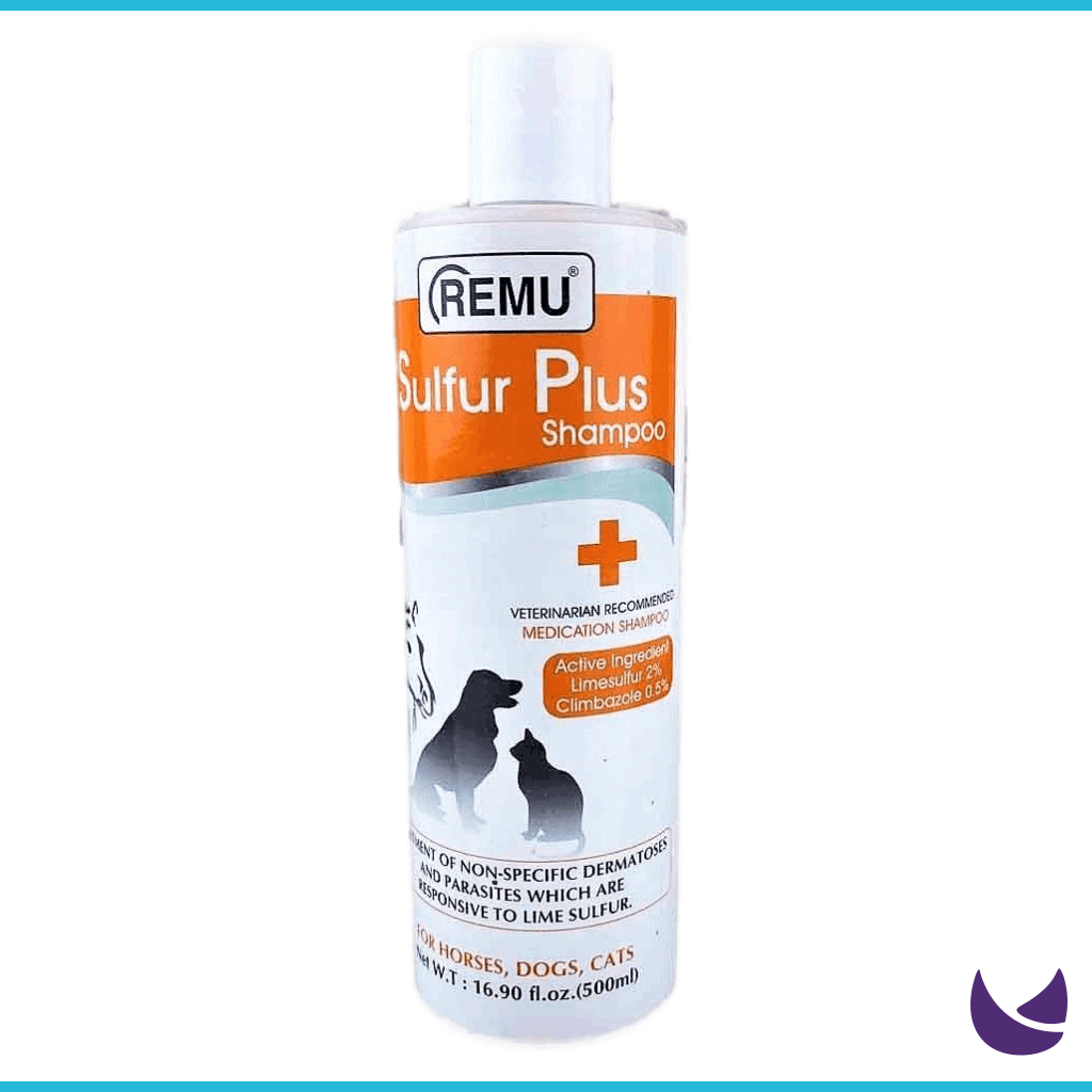 You want to leave a residue of the lime sulfur shampoo, so take care not to rinse your pets too well. The rinse water will just run clear, but your pet will still have yellow colour on its coat. This color disappears after a few hours.