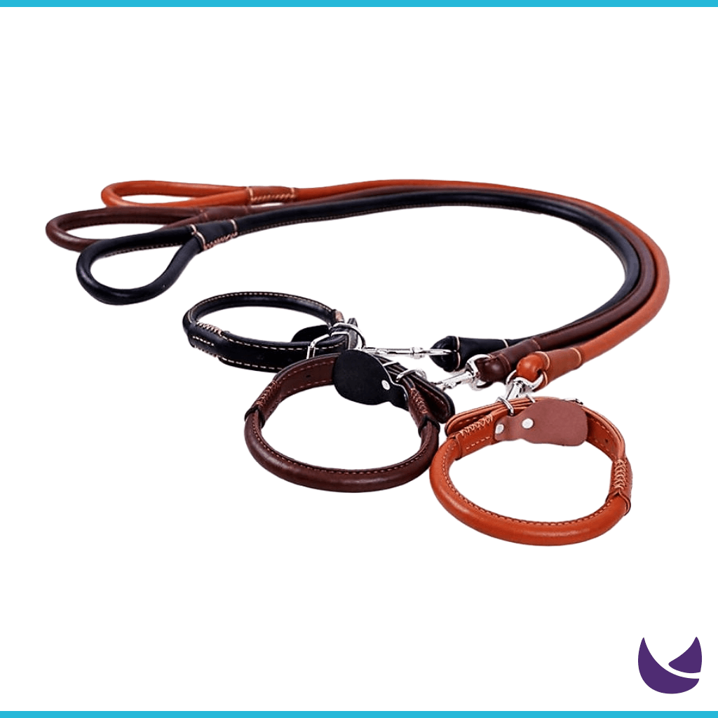 Genuine PU Leather Leash and Collar Set is a superior quality leash with collar that has premium golden stitching.