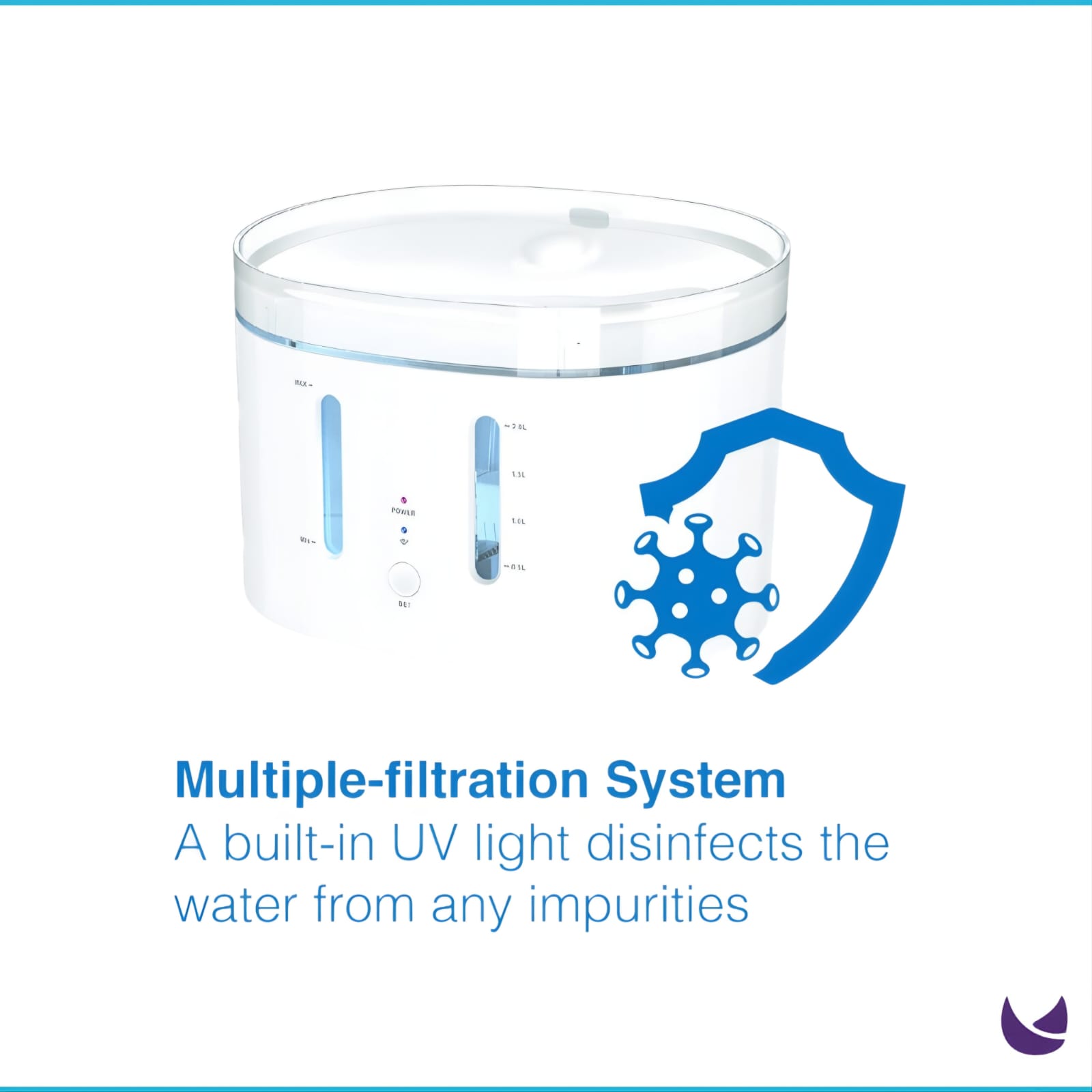 Note: automatic pet water drinking fountain is intended for indoor use only. Please change the water at least once a week and keep the cable hidden from pets.